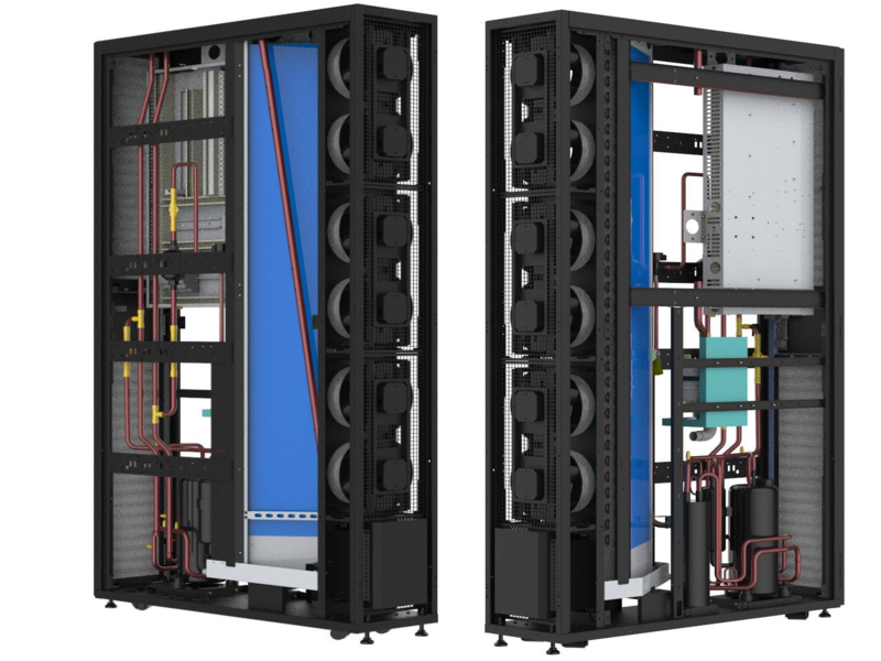 Puede integrarse con unidades de aire de precisión tipo Inrow o Inrack, disponibles desde 3.7 kW, que garantizan una disipación térmica estable, silenciosa y de alta eficiencia.